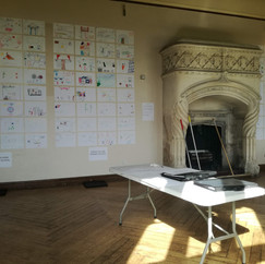 The students had visited us on site at the mansion over July. We had engaged 60 students from each school, encouraging them to look for architectural features on the premises made from wood, stone, tile, glass etc and requested that they draw observationally what they found. Following this task, the students had an exclusive tour of the mansion - something which the council have not authorized for the public in over 30 years - and then we asked them to re-imagine the future of the building. I was incredibly impressed with the social awareness and thought that went into these designs and had great pleasure in hanging them up for the public to appreciate on Saturday 28th September, as part of the celebrations.